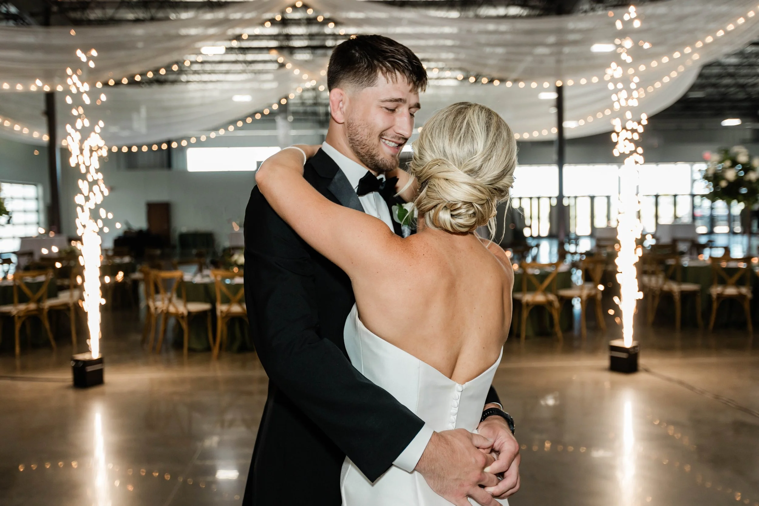 Cold sparks for a private first dance at Bend XPO in East Moline, IL. Photo: Kelsey Zwicker Photography